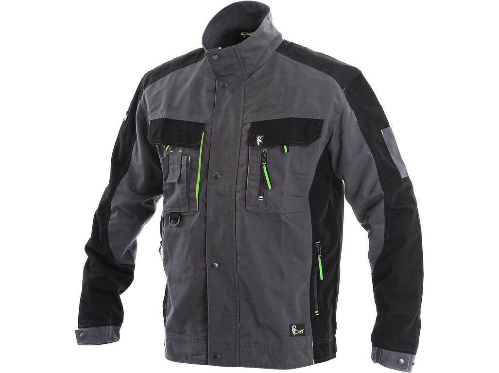 Pánská montérková blůza CXS, šedo-černo-zelená, norma: EN ISO 13688, rukáv s nastavitelnou manžetou, kryté zapínání na zip a na druky, multifunkční náprsní kapsy, boční kapsy na zip, ramena vyztužena materiálem 600D polyester.