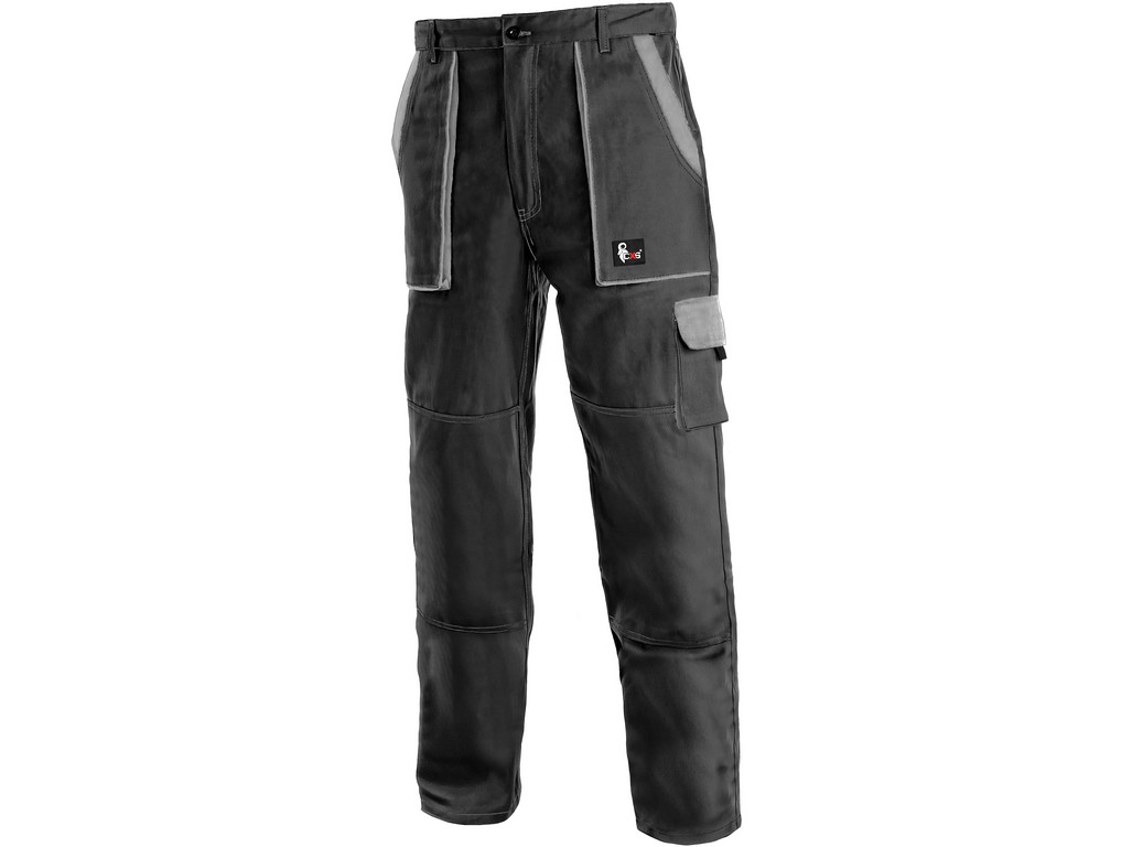 Pánské kalhoty CXS LUXY JOSEF, barva černo-šedé, pas s poutky na opasek, vzadu do gumy, přední kapsy, boční kapsa na svinovací / skládací metr, boční kapsa na mobil / peněženku, zdvojená kolena, zadní kapsa s klopou.