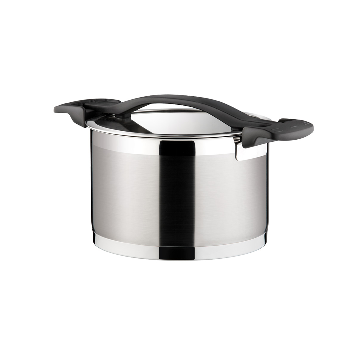 Luxusní kuchyňské nádobí s revolučním systémem regulace páry a cezení. Unikátní sklonerezová poklice se 3 pracovními polohami: 1. ŽÁDNÝ OTVOR PRO PÁRU pro rychlé dosažení varu a ohřívání pokrmů s úsporou energie, 2. MALÝ OTVOR PRO PÁRU pro komfortní vaření bez překypění a cezení nadrobno krájené zeleniny, 3. VELKÝ OTVOR PRO CEZENÍ brambor, těstovin a pro intenzivní vaření bez překypění. Poklici lze odkládat do úchytů, pára stéká zpět do nádobí. Opatřeno extra silným sendvičovým dnem, stupnicí pro snadné odměřování a úchyty z odolného plastu. Vyrobeno z prvotřídní nerezavějící oceli 18/10, vhodné pro všechny typy sporáků - plynové, elektrické, sklokeramické a indukční, vhodné do myčky. 5 roků záruka.